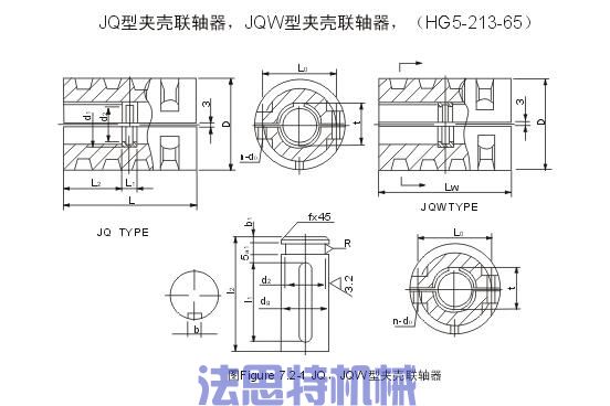 JQ型夹壳联轴器拆卸和组装时轴不需轴向挪动,因为装拆很便捷,夹壳联轴器的缺欠是两轴轴线对于中精密度低,设计和外形比拟简单,制作及平稳精密度较低,只适合于低速和负荷平衡的工况,一般最大外缘的线进度不大于5m/s,当线进度超越5m/s时需求完成平稳校验